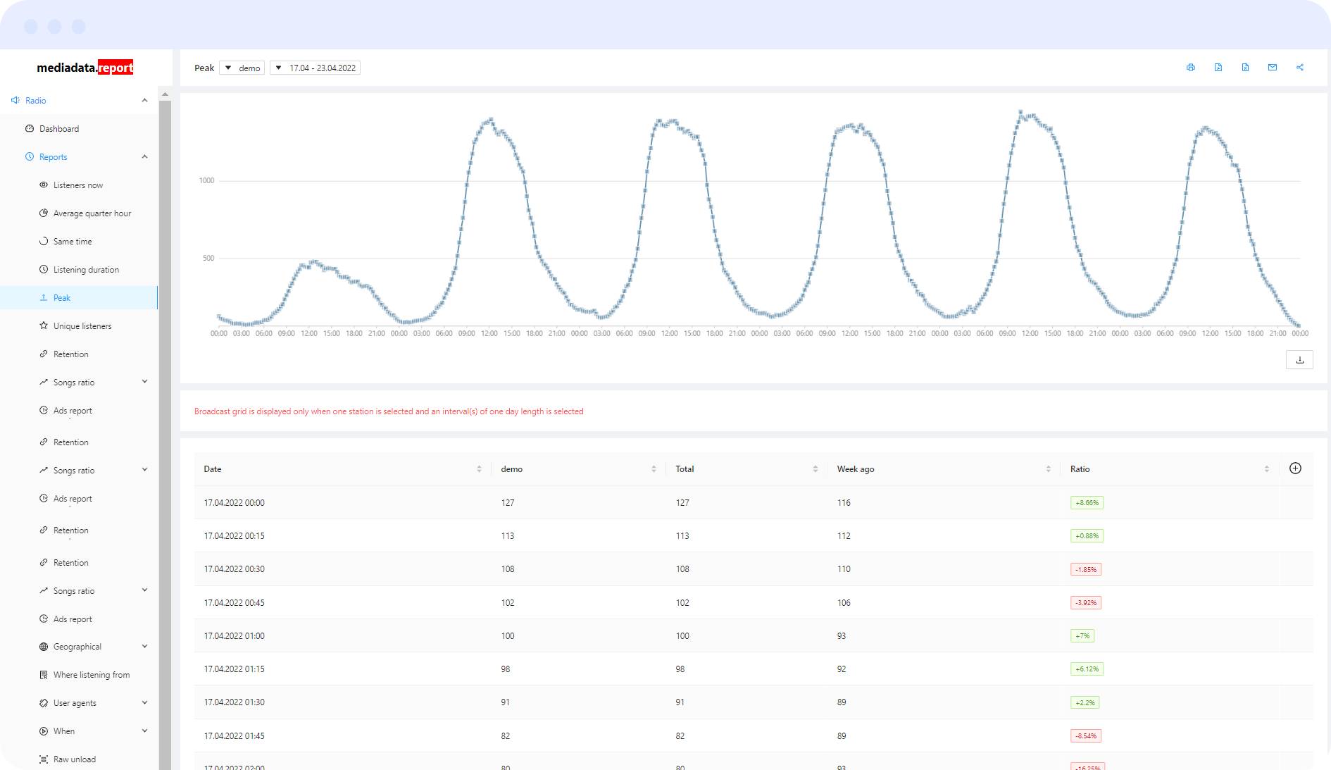 Peak listeners are the people quantity who at some moment in time listened to the broadcasting at once. In other words, the maximum number of people who listened to your station