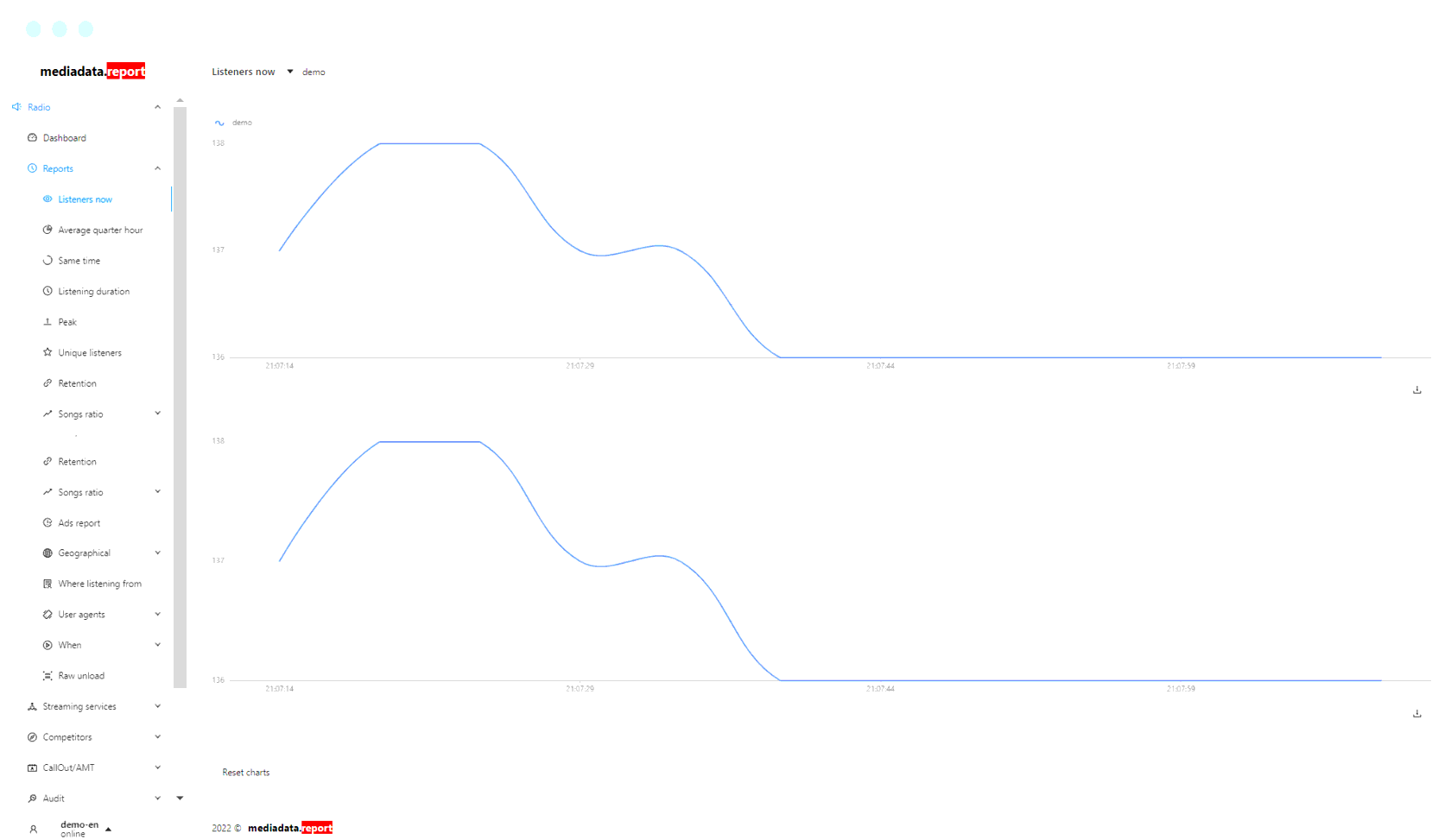 The report allows you to see the number of listeners who listen to the selected radio stations in real time.